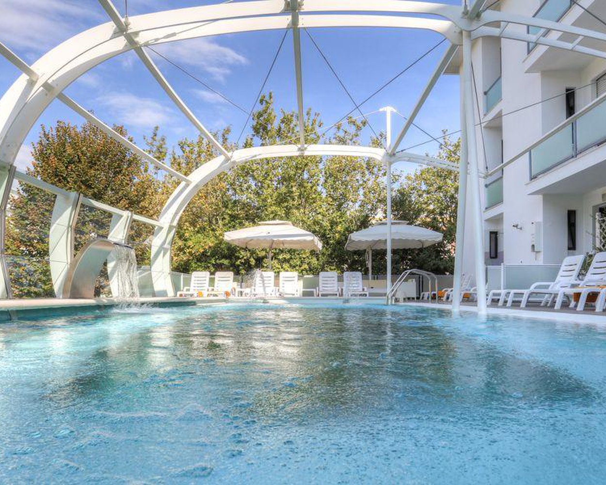 Šalia pagrindinės Katolikos gatvės, apie 80 m iki privataus paplūdimio, apie 200 m iki pėsčiųjų zonos ir apie 1 km iki istorinio miesto centro. „Le Navi” akvariumas priešais viešbutį. Šalia yra parduotuvės, barai ir restoranai. Apie 200 m iki autobusų stotelės. Apie 2 km iki geležinkelio stoties. Atstumas iki Ankonos oro uosto – apie 75 km, iki Bolonijos oro uosto – apie 138 km, iki Riminio oro uosto – 13 km.