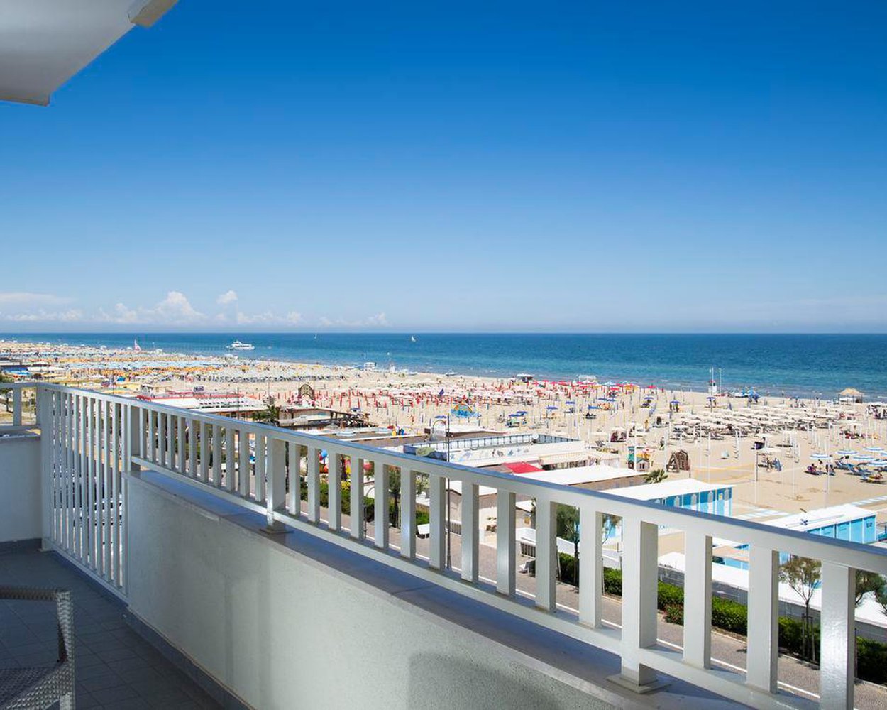 Riminio Miramare rajone, apie 5,5 km nuo miesto centro, keli žingsniai iki paplūdimio ir aplinkinių restoranų, kavinių ir parduotuvių. 11 autobusas į miesto centrą, stotelė Nr. 32, 180 m nuo viešbučio. Atstumas iki Ankonos oro uosto apie 95 km, iki Bolonijos oro uosto – 125 km, iki Riminio oro uosto – 2-9 km.